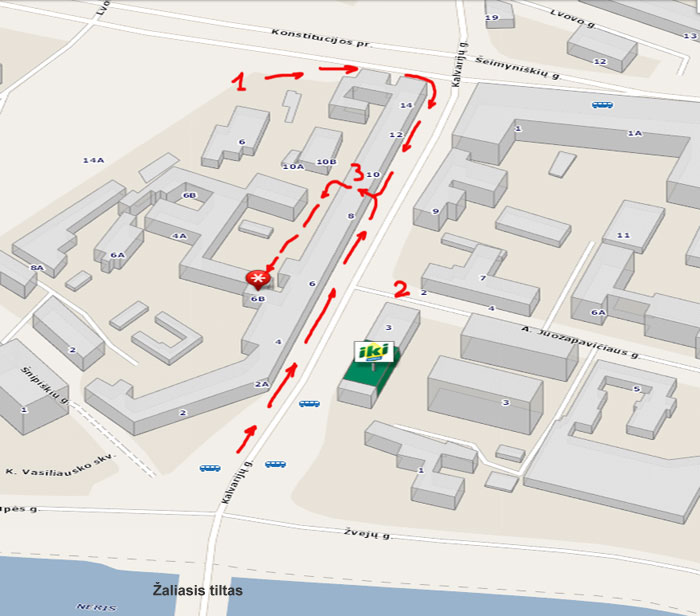 Pastatas yra kieme, todėl iš Kalvarijų g. 8, įėjus per 3 numeriu
